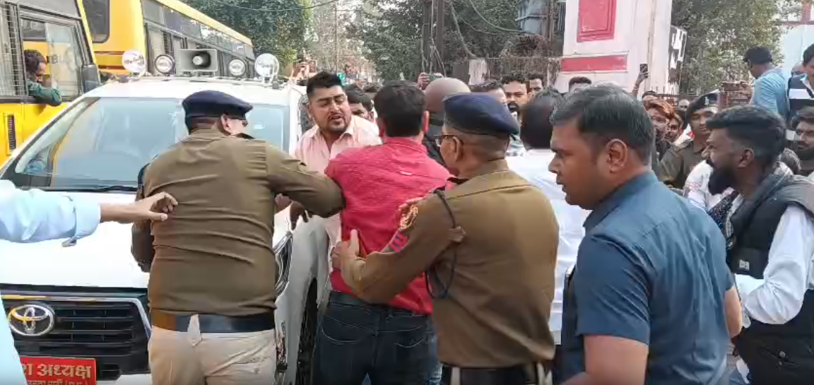 दुर्ग से बड़ी खबर, बढ़े हुए सरकारी रजिस्ट्री दर को लेकर आक्रोशित प्रॉपर्टी डीलरों ने दुर्ग कलेक्ट्रेट के सामने प्रदर्शन के दौरान भाजपा प्रदेश अध्यक्ष किरण सिंह देव का काफ़िला रोक दिया,, वे एक दिवसीय दुर्ग दौरे पर थे प्रॉपर्टी डीलर मुलाकात को लेकर अड़ गए,, इसी बीच सुरक्षा कर्मियों के सामने प्रदर्शनकारी प्रॉपर्टी डीलरों की भिलाई जिला भाजपा अध्यक्ष और जिला महामंत्री के बीच धक्का मुक्की के साथ अच्छी खासी तीखी बहस भी हो गई,, इससे काफी देर तक काफ़िला रुका रहा,, इस घटना ने बीजेपी विधायक प्रदेश अध्यक्ष किरण सिंह देव की सुरक्षा को लेकर बड़े सवाल भी खड़े कर दिए हैं,, प्रॉपर्टी डीलरो ने बढ़ी हुई रजिस्ट्री दर को लेकर कहा कि जमीन खरीदना आम जनता के लिये बहुत महंगा साबित होगा,,