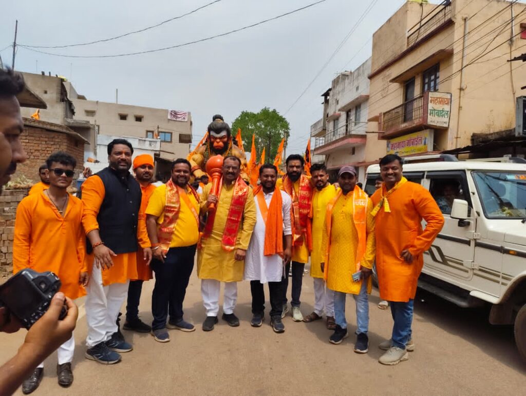 भिलाई ~ सुबोध तिवारी ~ विश्व हिंदू परिषद बजरंग दल कुम्हारी नगर जिला दुर्ग के द्वारा हर वर्ष की भांति इस वर्ष भी भव्य शोभायात्रा निकाली गई। यह शोभायात्रा श्री राम लिंगेश्वर मंदिर वार्ड क्रमांक 18 से शुरू होकर कुम्हारी चौक होते हुए हाउसिंग बोर्ड कॉलोनी फिर प्रभात चौक होते हुए कांजी हाउस हनुमान मंदिर मेंसमाप्त हुई। शोभा यात्रा के दौरान कुम्हारी नगर व्यापारियों के द्वारा सेवाके रूप में प्रसाद वितरण किया गया। ऐसे व्यापारियों को बजरंग दल की ओर से प्रशस्ति पत्र दे कर सम्मानित भी किया गया। इस कार्यक्रम का नेतृत्व कुम्हारी नगर संयोजक कुणाल शर्मा ने किया, इनका साथ नगर अध्यक्ष अनुज शुक्ला, नगर मंत्री भूपेंद्र मानिकपुरी नगर की मातृशक्ति रतना दास एवं भाजपा पार्षद प्रवीण राव के साथ गौ रक्षा प्रमुख मोनू साहू और विश्वामित्र यादव द्वारा दिया गया। शोभा यात्रा में मुख्य रूप से प्रदेश के अतिथि घनश्याम चौधरी, हरदीप सिंह, प्रदेश संयोजिका शशि बंछोर एवं दुर्ग जिला मंत्री राकेश रामलोचन तिवारी, मिथिलेश यादव, पूर्व नगर अध्यक्ष अवधेश शुक्ला, उपाध्यक्षअनिल निखड़े, उपाध्यक्ष हरीश सोनी, गणेश यादव, मनोज यादव, सुनील प्रमोद, राजकुमार, रवि साहू, शुभमचिंचूलकर, कुम्हारी नगर पालिका की अध्यक्षा मीना वर्मा, पार्षद रितिकामिथिलेश यादव, उमाकांत साहू एवं समस्त बजरंग दल कार्यकर्ताओं एवंमातृशक्ति दुर्गा वाहिनी की महिलाओं ने कार्यक्रम को भव्यता देने के लिए कई समाज के प्रमुख लोग भी इसमेंशामिल हुए। विश्व हिंदू परिषद बजरंग दल के साथियों के द्वारा शोभायात्रा के दौरन गौ माताओं को चारा भी खिलाया गया। इस तरह से गौ माता का भंडारा किया गया।CgDurg@subodhtiwari9827404862